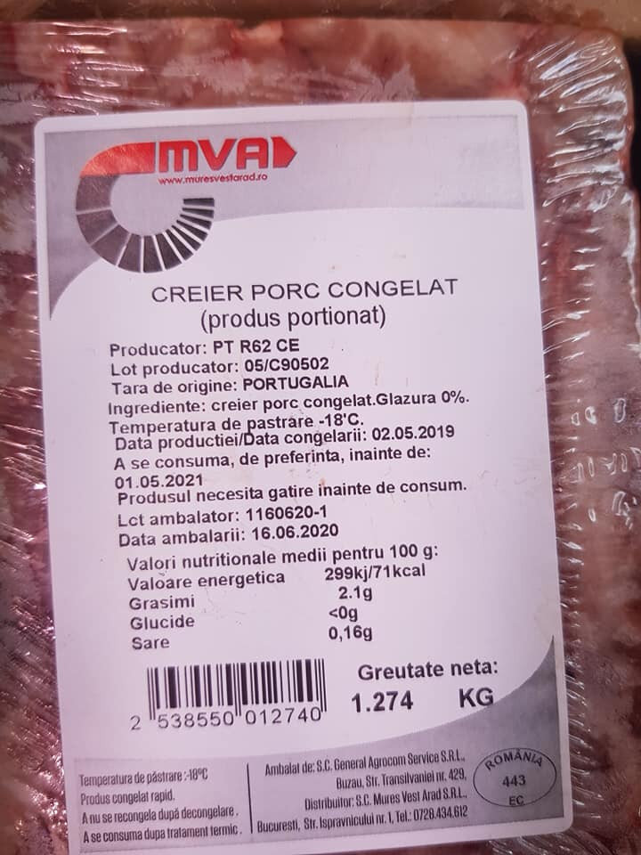MVA Creier de porc / Schweinehirn tiefgekuehlt KG, TK
