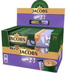 JACOBS Milka 3 in 1 Kaffee 12,4 g ist ein Instant-Getraenkepulver mit Kakao, loeslichem Bohnenkaffee und Kaffeeweisser. Perfekt fuer eine schnelle und cremige Kaffeezubereitung mit schokoladigem Geschmack.
